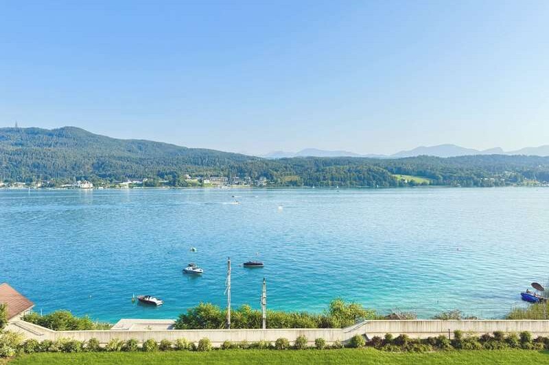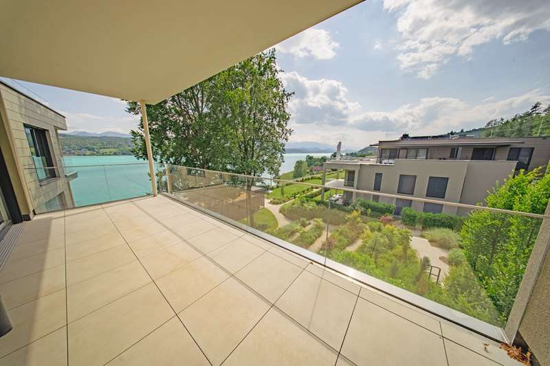 Die 2-Zimmer-Wohnung besticht durch eine großzügige Loggia mit Blick auf den Wörthersee. Hochwertige Möbel schaffen ein elegantes, zeitloses Ambiente. Der offene Wohn- und Essbereich ergänzt durch eine gepflegte Küche bietet eine stilvolle, kommunikative Raumgestaltung, während große Fensterfronten viel Tageslicht hereinlassen. Das Schlafzimmer präsentiert sich mit einem designorientierten Ambiente und das Bad überzeugt mit hochwertigen Oberflächen. Von der Loggia genießen Sie den Seeblick und eine Nähe zum Seeufer, ideal zum Entspannen oder für entspanntes Möblieren im Freien.