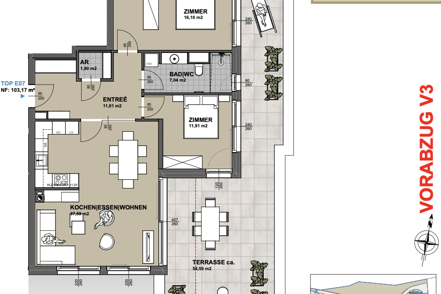 Haus E Top 07 Traum-Penthouse mit großzügiger Terrasse: Modernes 3-Zimmer-Highlight