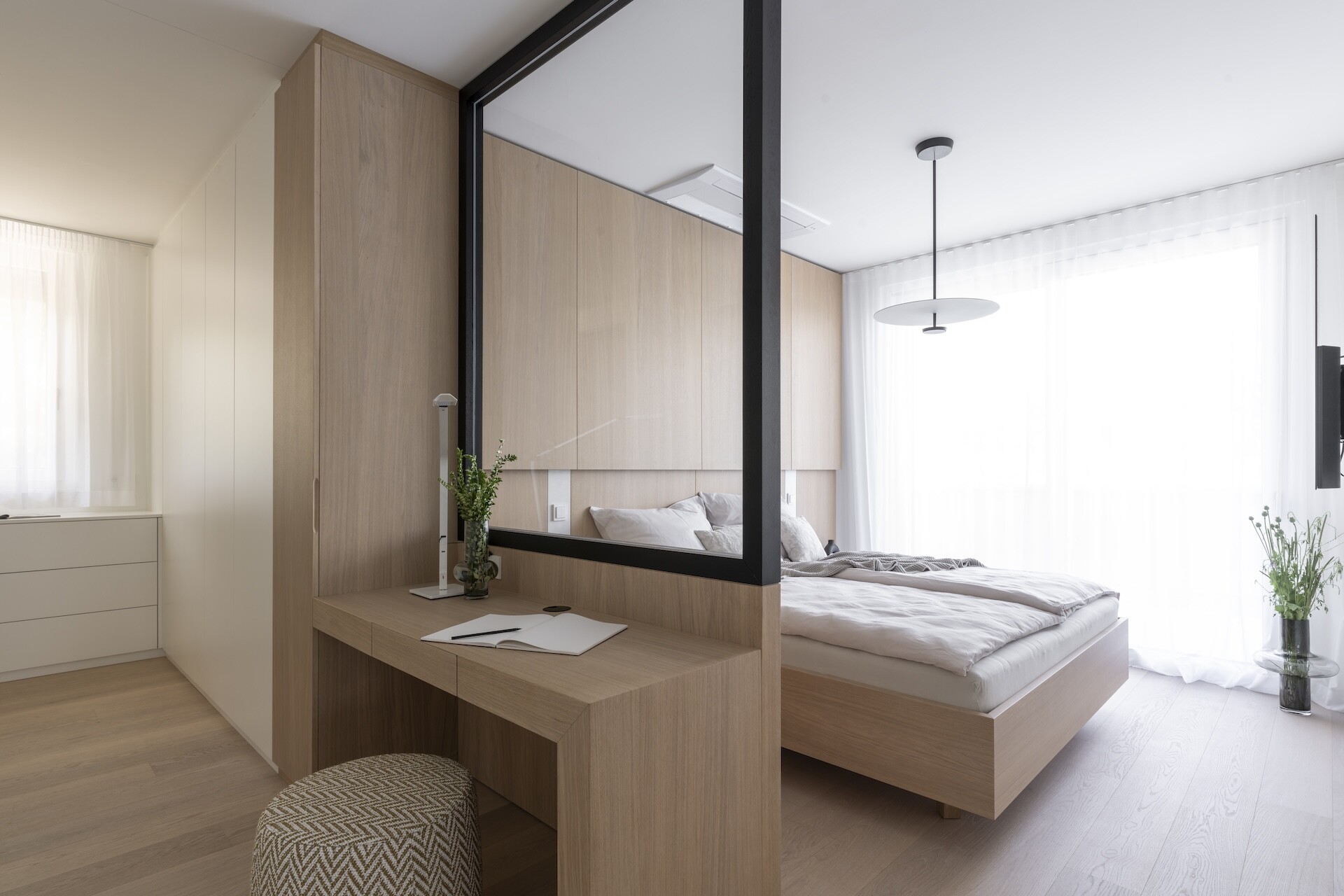 - Schlafzimmer mit begehbarem Kleiderschrank, Bad en-Suite und Ausgang auf Terrasse