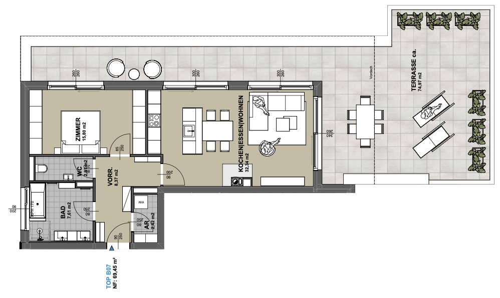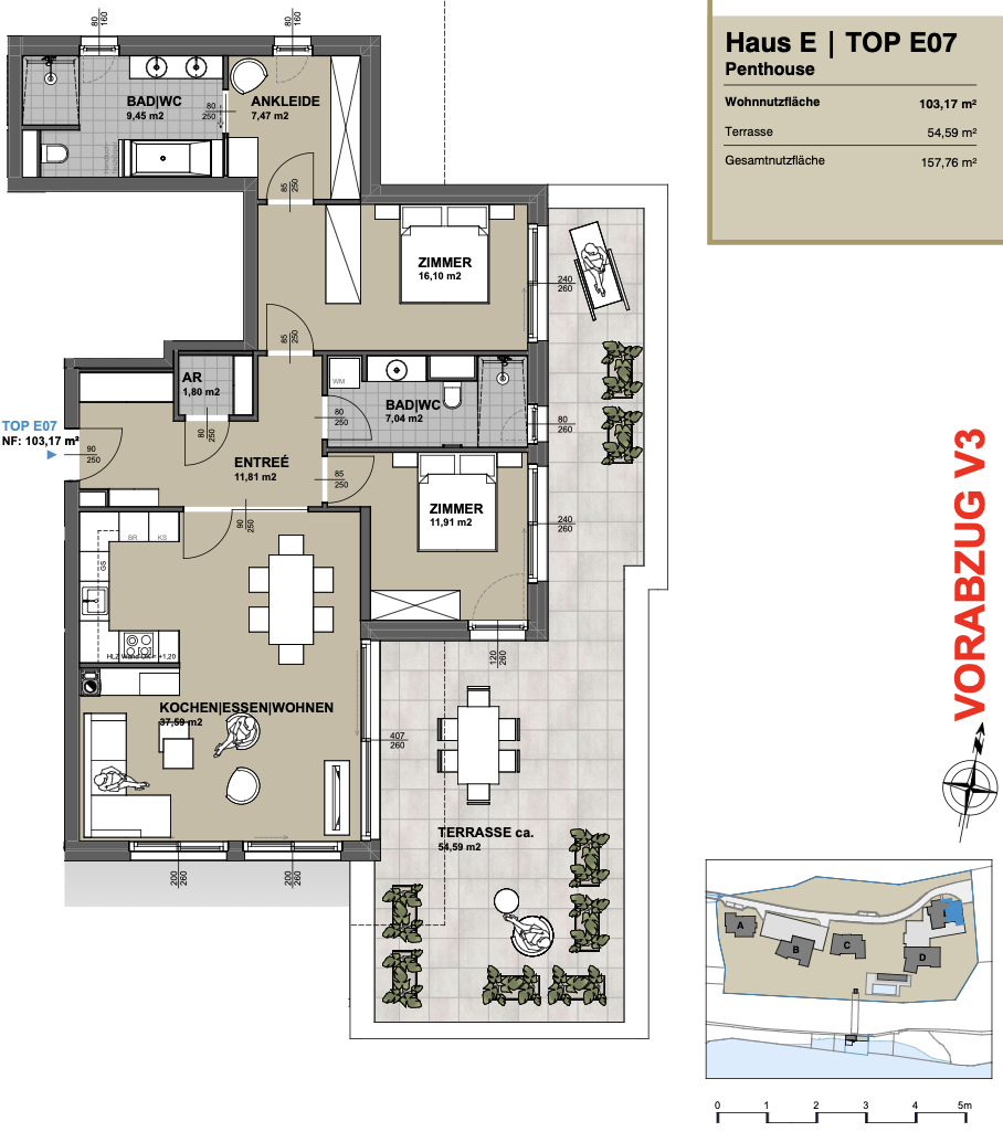 Haus E Top 07 Traum-Penthouse mit großzügiger Terrasse: Modernes 3-Zimmer-Highlight