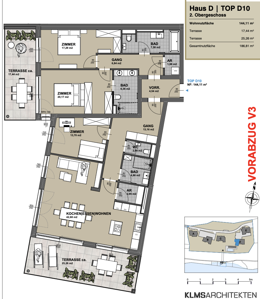Penthouse mit 5 Schlafzimmern in Top-Lage. Zwei Schlafzimmer verfügen über en-Suite Bäder. Großzügiger Wohn-, Ess- und Kochbereich mit raumhohen Fenstern und hochwertiger Möblierung. Eine 250 m2 große Terrasse bietet Panorama-Blicke auf die Berge und den Wörthersee. Exklusive Ausstattung, erstklassige Materialien und luxuriöser Wohnkomfort vereint in einer eleganten, modernen Architektur. Ideal für anspruchsvolle Käufer, die Großzügigkeit, Privatsphäre und eindrucksvolle Aussicht schätzen.